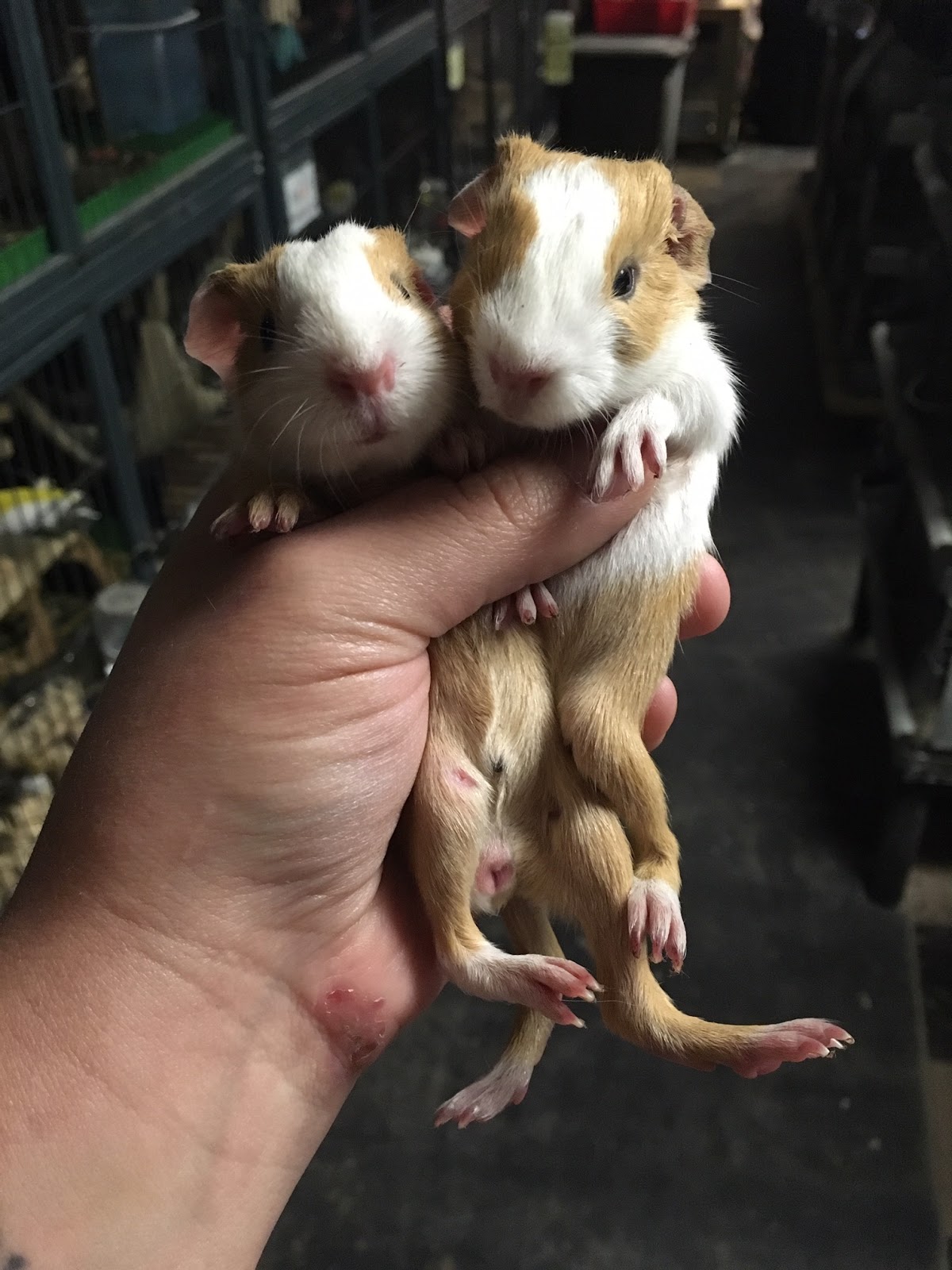 Coco and Cookie are still chilling here, though Cookie has a pending adoption going on. Well... turns out Coco was pregnant again before we got them in and separated them, and on 9/1, she delivered two bouncing babies!